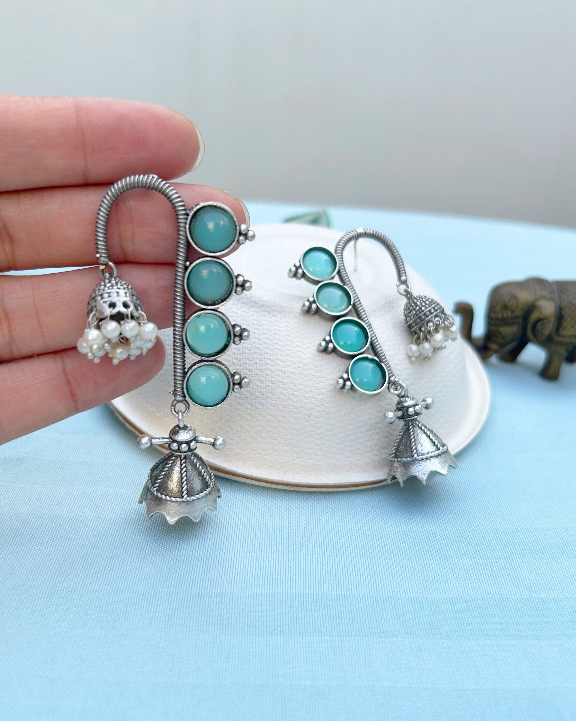 Sea Green Aranyas Dual Jhumki
