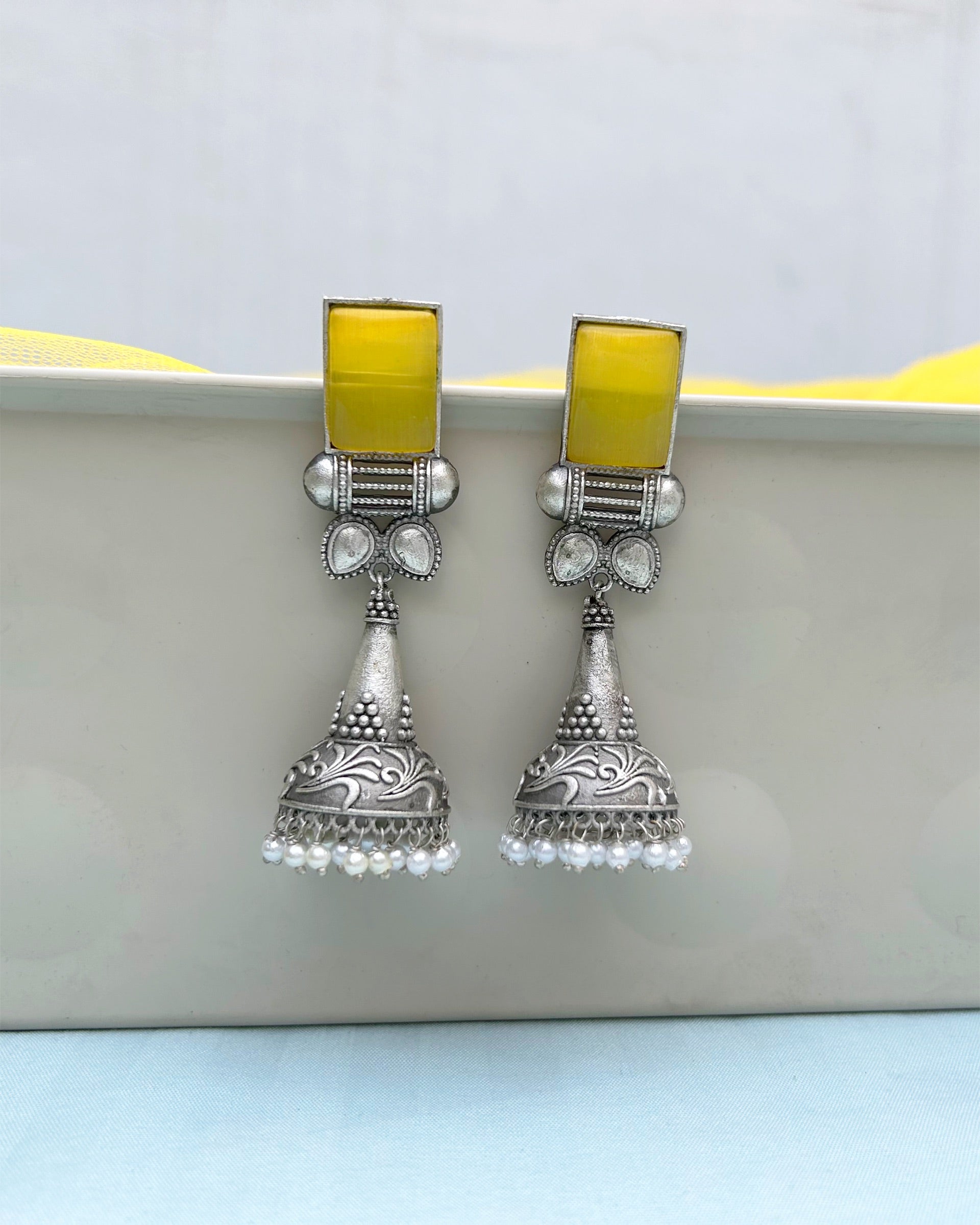 Preparing for an occasion? Slip on this Yellow Jhumka and get set to shine! It’s the perfect accessory to give your look some extra sparkle. Bask in its style with its perfect length, and you’ll be a showstopper like no other!